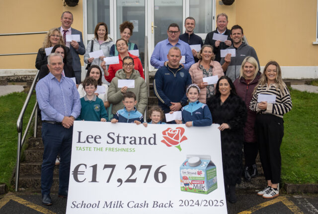 The thirty-four schools in the 2024/2025 Lee Strand 50% School Milk Cash Back Programme are: Ardfert NS; Ballincrossig NS; Ballyfinane NS; Blennerville NS; Scoil Naomh Chárthaigh; Brosna NS; Carrickerry NS; Clogher NS; Cullina NS; Faha NS; Fybough NS; Gaelscoil Aoghain; Gaelscoil Faithleann; Glenbeigh NS; Gneeveguilla NS; Holy Family NS; Kilcummin NS; Kiltallagh NS; Knockaderry NS; Lisselton NS; Murhur NS; O’Brennan NS; Scoil Bhreanainn; Scoil Chriost Ri; St Brendan’s NS; St. Joseph NS; Knocknagree NS; Camp Community Childcare; Scoil Nuachabhail; Derryquay NS; Scoil Mhuire Killorglin; Kilgarvan NS; Knockaclarig NS and Scoil Iogniad Ris.